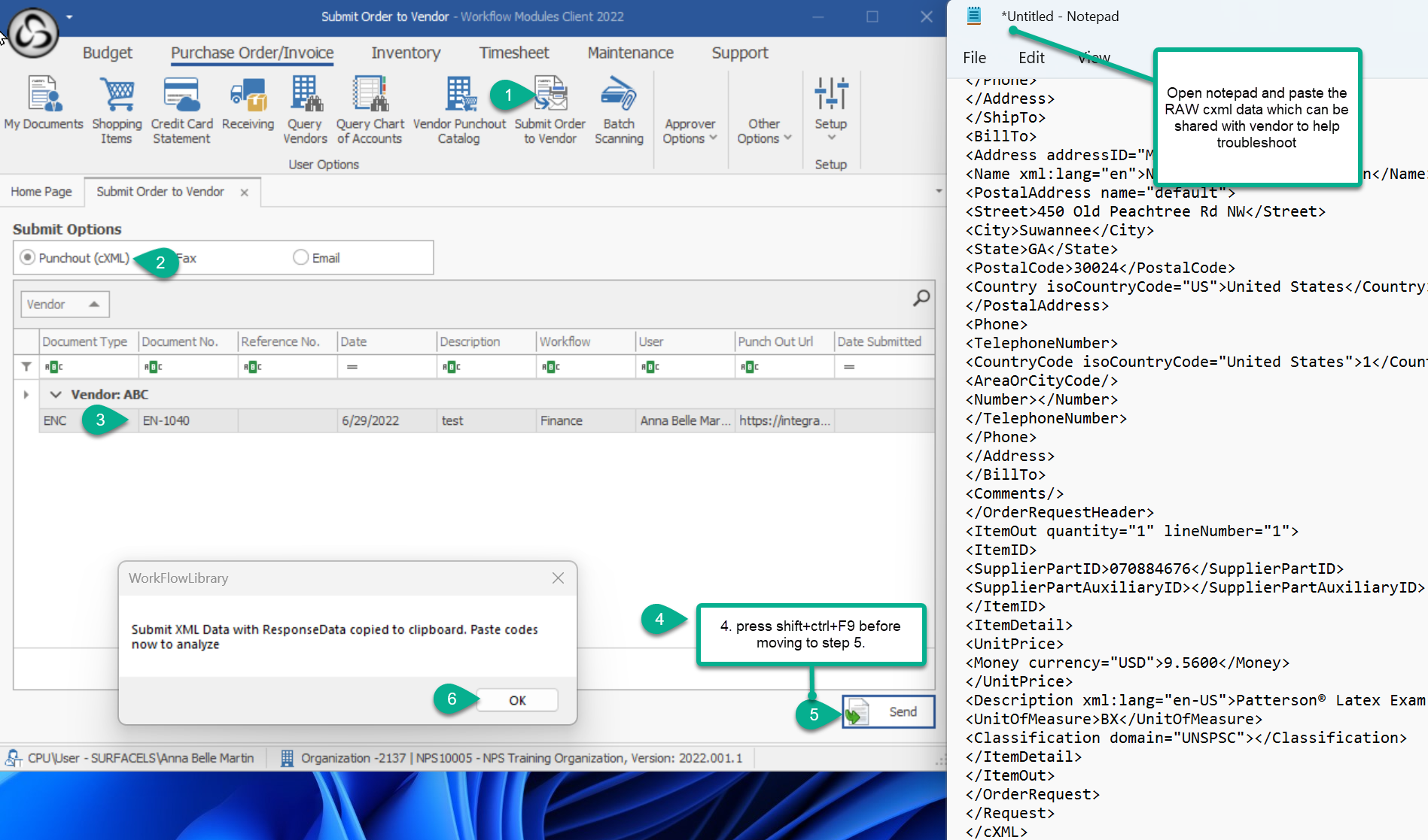 2. OrderRequest document is analogous to a purchase order - How to capture the raw CXML file for submitting a purchase order to vendor. This file is used to submit an approved purchase order to the vendor