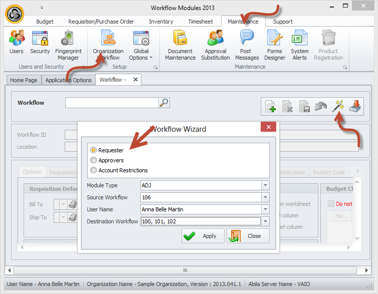 1. Navigate to Maintenance>Organization Workflow