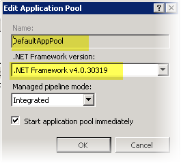 Step 1. Validate Application pool is set to .Net 4.0 or higher