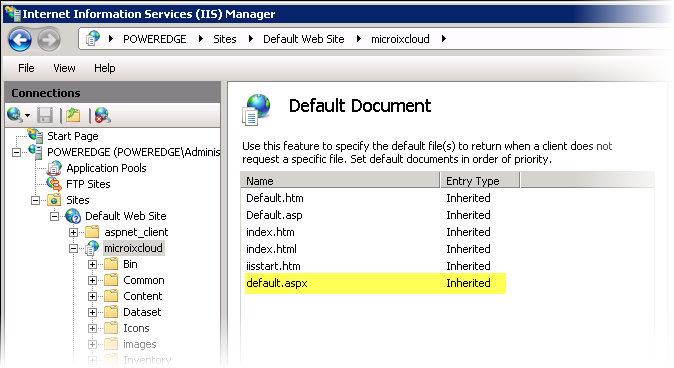 http://localhost/microixcloud (You can replace “localhost” with your IIS server name. To access the application via the Web, setup your router and a registered domain or sub domain to point to your internal IIS server via the router firewall application routing setting. We recommend using a secure site “https” when exposing the application over the web.