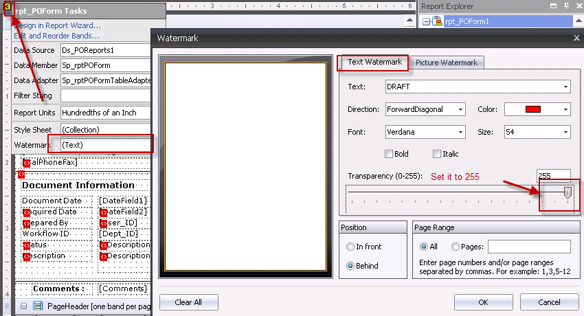 To Remove Watermark Go to Custom report and Edit an existing report