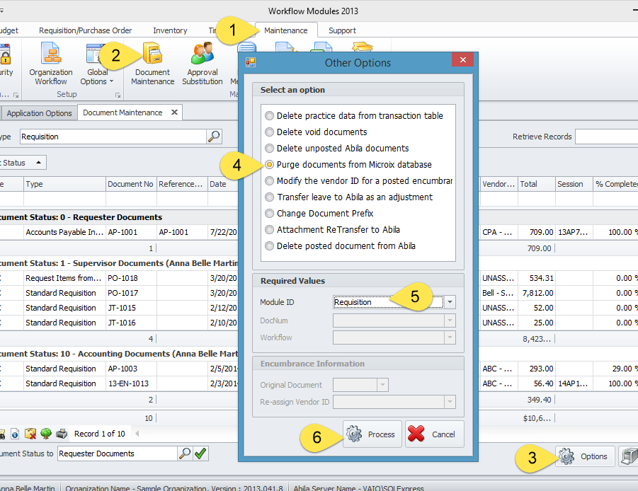 For new customers, you may enter test transactions in our system and purge them before going live. To do so, follow the steps below. Microix will only purge the document but the setup of users and workflows will not be purged.