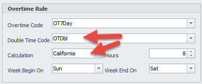 3. Setup OT7Day as California with 8 per day (Over 12 will still pay double with OTDbl specified in Setup)