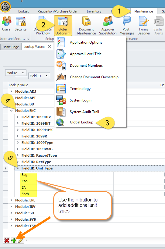 Follow the steps below to add addition unit of measure to the requisition form and to the inventory form when creating new inventory items:
