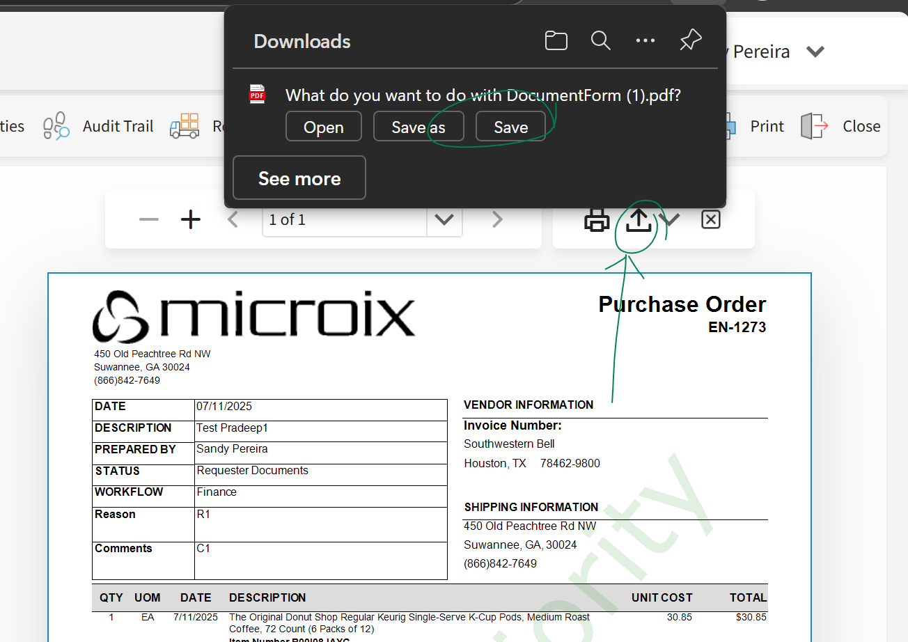 The exported PDF can be shared with any user, even if they are not part of the original approval process in Microix.