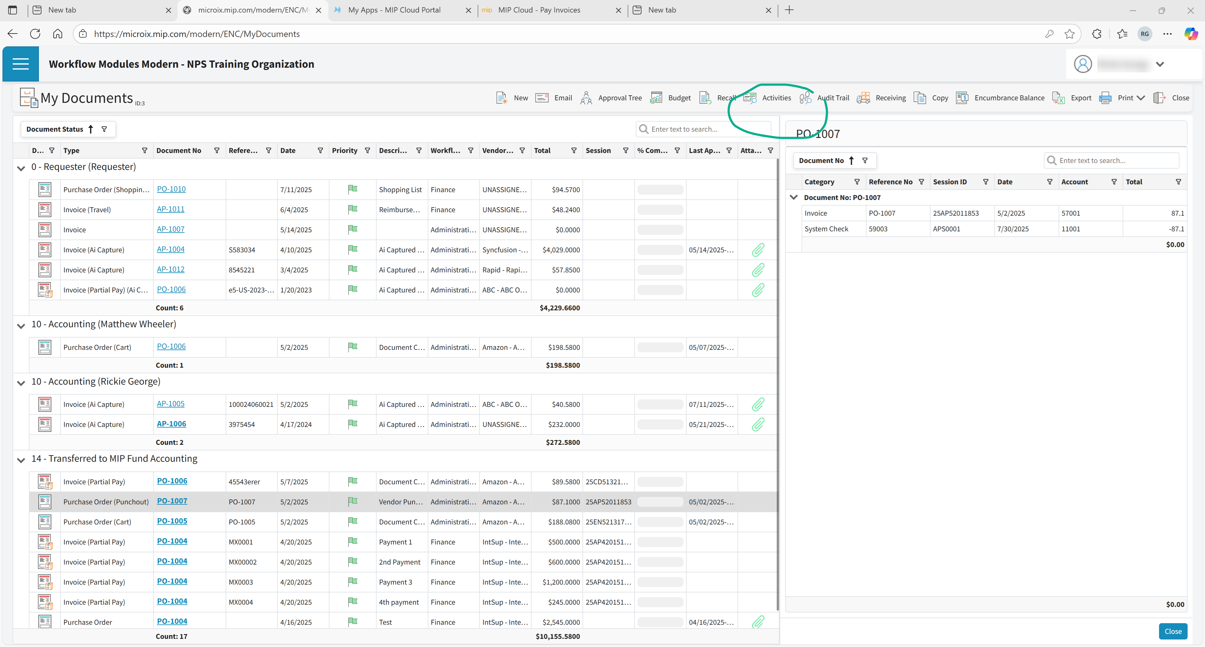 This article explains how to locate finalized MIP transactions within Microix using the Session ID, Purchase Order, or Invoice Number. It also covers how to retrieve vendor payment history, including invoice and check sessions, through the Vendor List and Document List/Search menus.