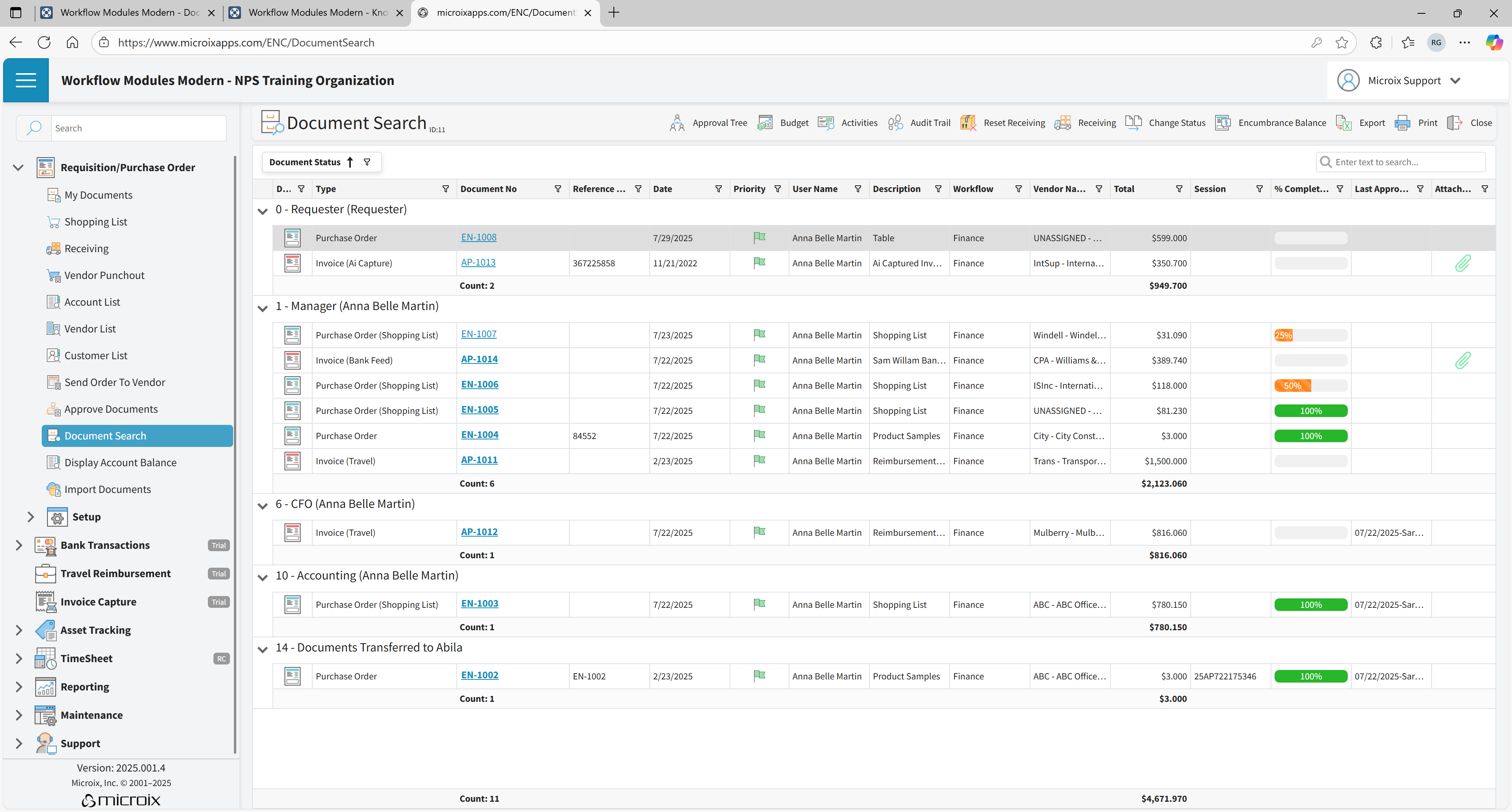 In the Modern interface of Workflow Modules, the Document Maintenance features previously available in the Classic (Windows) version have been relocated to the Document Search.