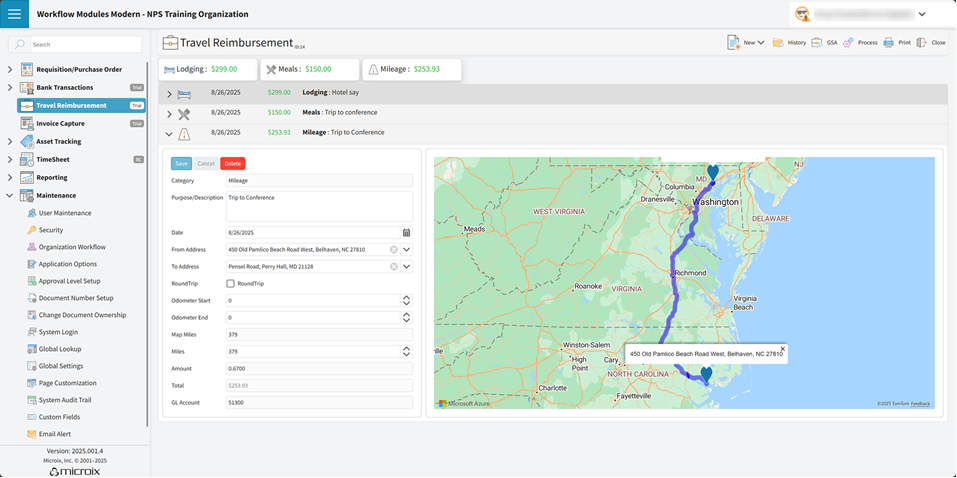 Proper Security Permissions must be granted to users via Maintenance > Security for Travel Reimbursement.