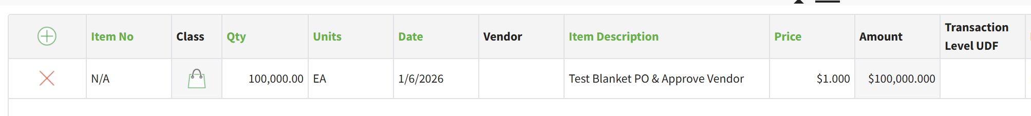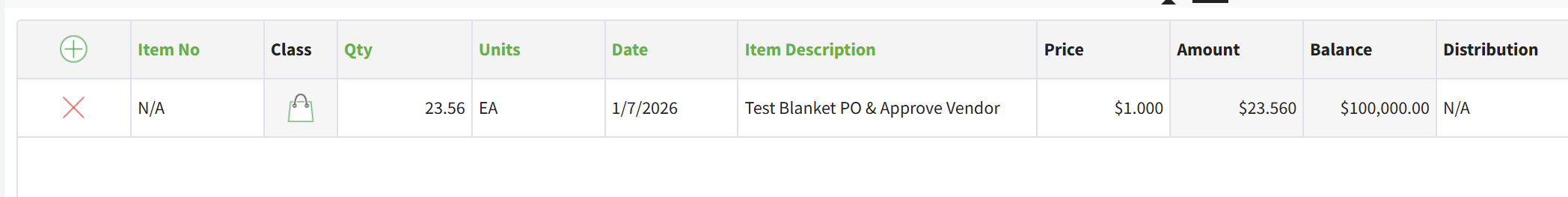 PO line setup: