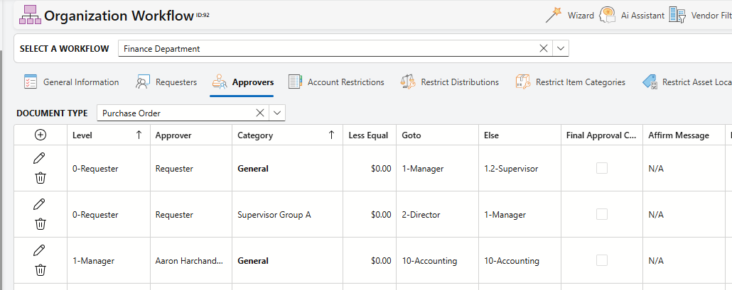 Microix Workflow typically uses automated routing based on predefined rules such as document value and expense coding. However, there are scenarios where manual approver selection is required at a specific stage in the workflow.