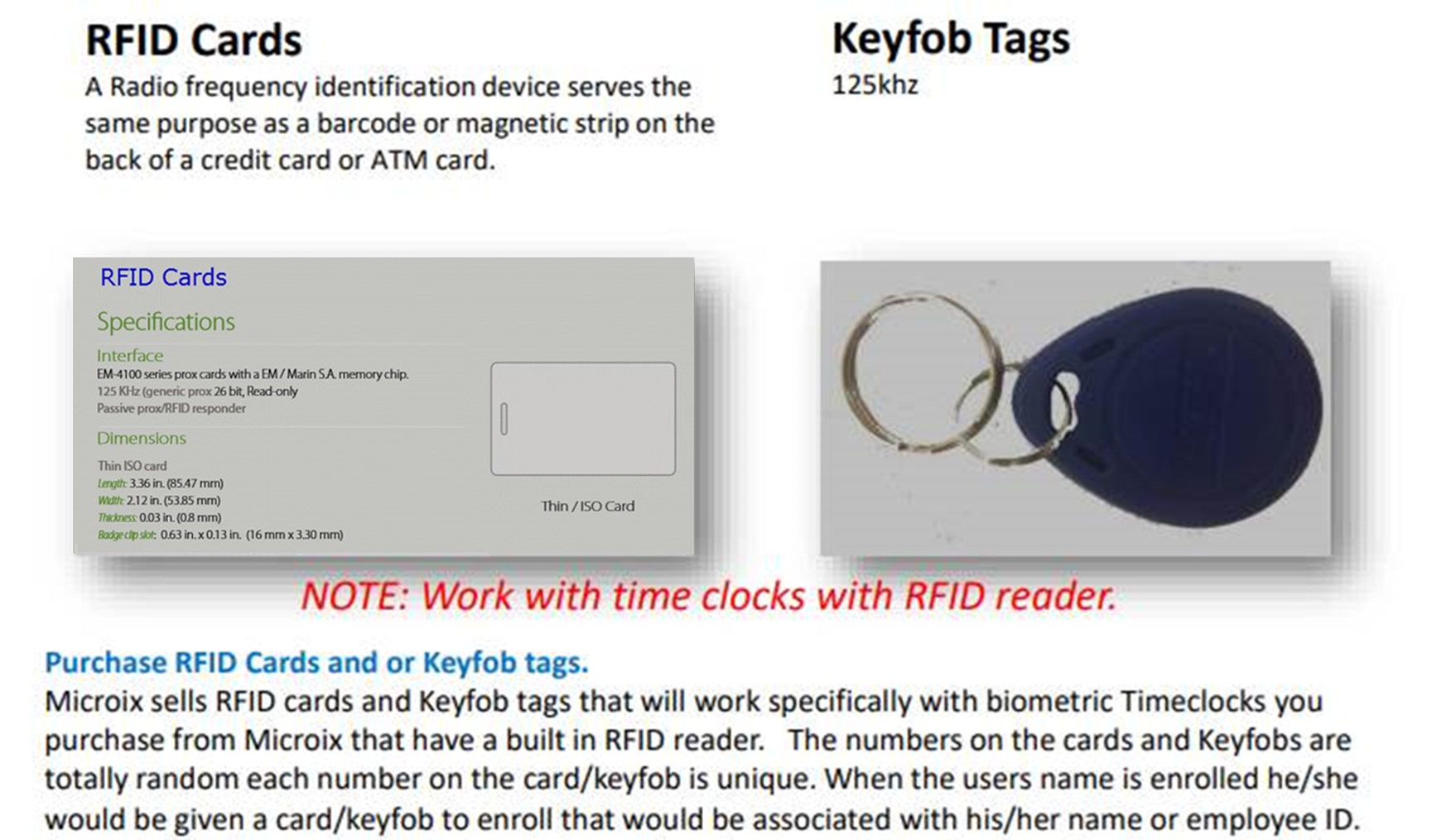 Specs on RFID Cards and Keyfob Tags: