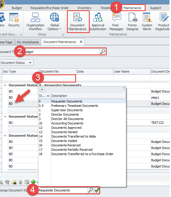 1. Navigate to Maintenance > Document Maintenance
