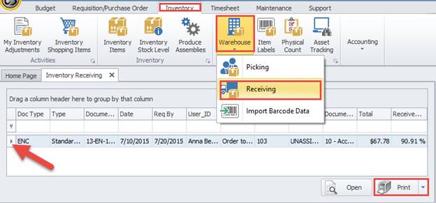 4. Now, with the printed document and barcode scanner in hand, head to the receiving location.