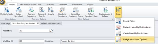 2. Navigate to Budget > Setup > Budget Worksheet Options