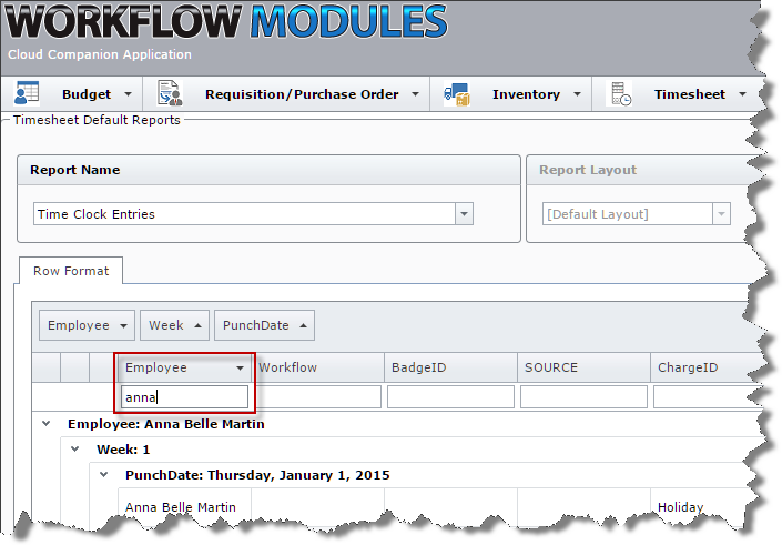 Employee Filter on