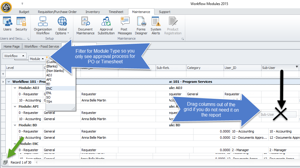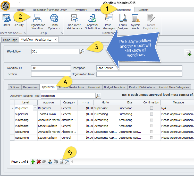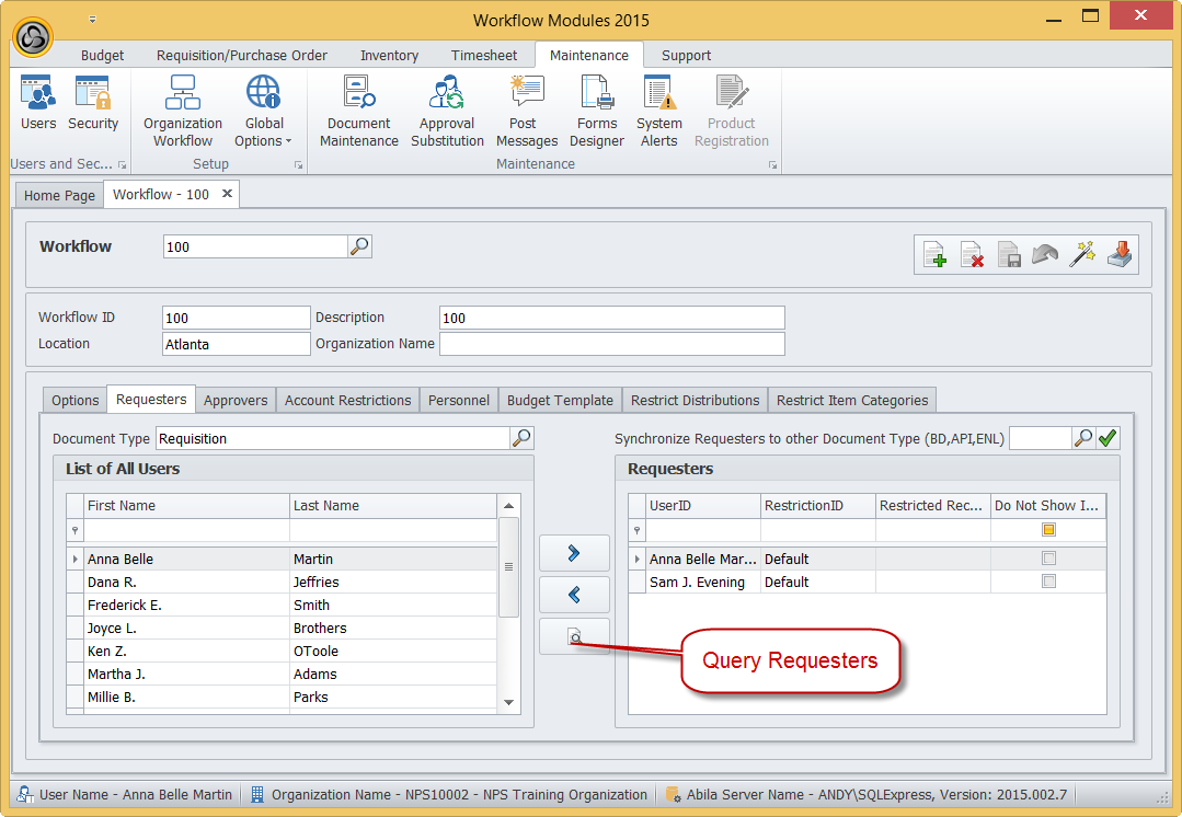 Note: You cannot query Requesters and Approvers at a same time, Close the Query Approver form in order to open Query Requester