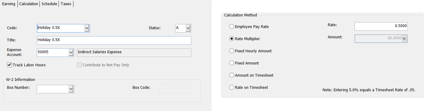 Create Holiday Earning Code in MIP with 0.5 rate using Calculation method “Rate Multiplier”