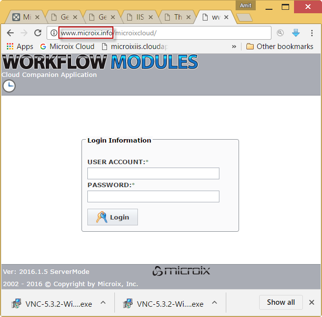 Users can now navigate to the domain name and IIS will redirect them to Microix cloud application automatically: