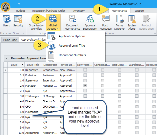 1. Create/Activate a new approval level