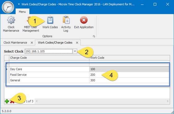 2. After creating all work codes and associating them with a charge code, open the Microix Time Clock Manager software to upload all work codes to the time clock.