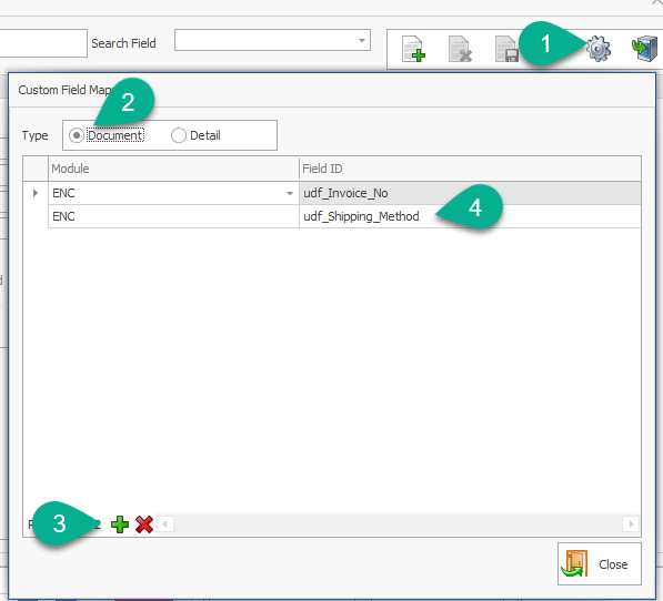 Finally, you map your user defined field to the Microix Document Type as shown below: