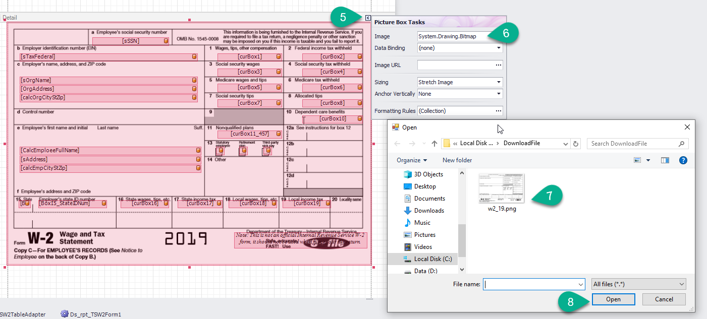 3. Use Microix forms designer to edit the W2 form and update the w2 image as shown below: