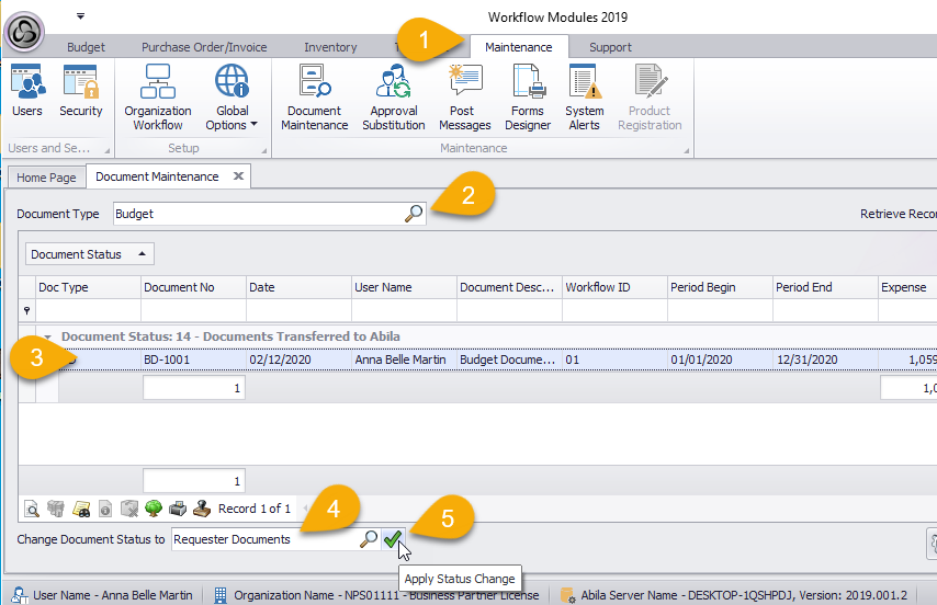 - Navigate to Maintenance tab