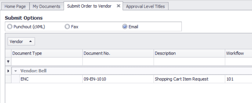 By default a purchase order must reside at level 10 to show in the “Submit to Vendor Form”
