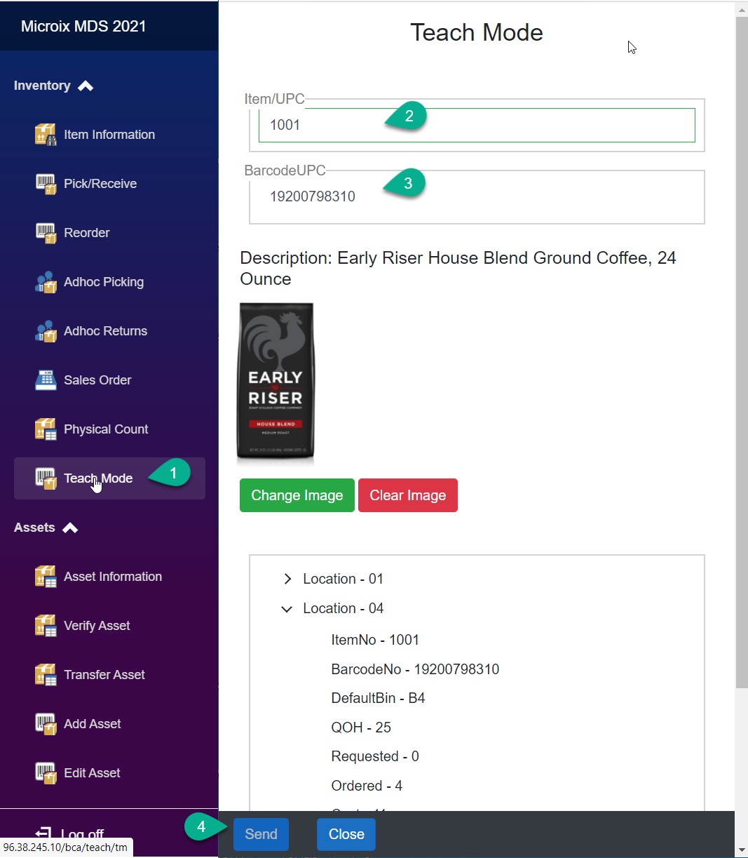 - Enter or scan Microix Internal Inventory Number (use Workflow Modules to print barcode labels from if necessary to help speed up the teaching process