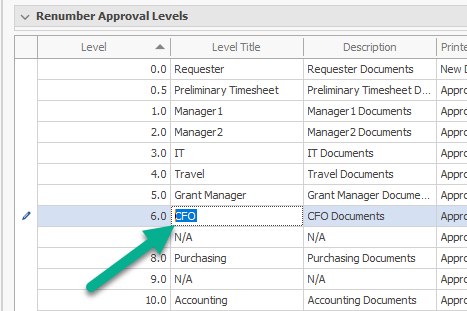 - Create a new approval level if it does not exists by navigating to Maintenance Tab>Global Options>Approval Level Titles: