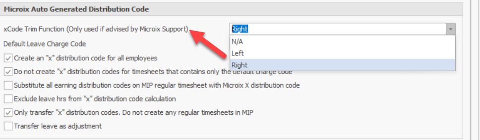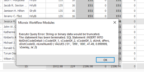 Solution - Basically the xcode value is too long to fit the Distribution Code value. So we need to trim Right. Example If dist code field is 15 char and the employee id is 15 we add xEmployeeID which will make it 16.