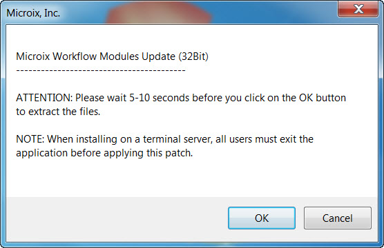 When checking for new updates, the process should be performed at any one PC where Microix Workflow Modules Client is installed. All other workstations will be prompted to update during their the login process. The updates will run from the Microix Share folder which is located on the MIP server.