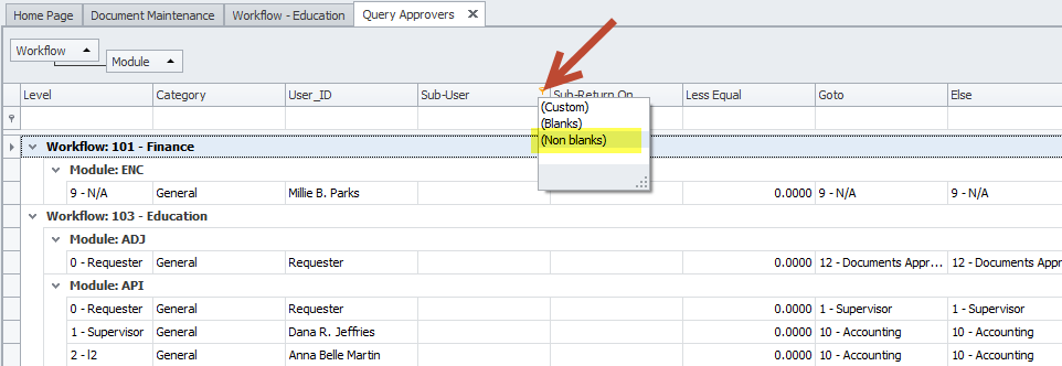 Question:Is there a query or report to see who has approval substitution and the dates from and to, etc. I couldn’t find a way to do that other than pull each name in the drop down list to see 1 by 1. Need to know who to contact if substituting & for audit trail purposes.