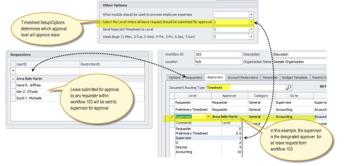 Example showing how to setup leave approval for the Timesheet Module