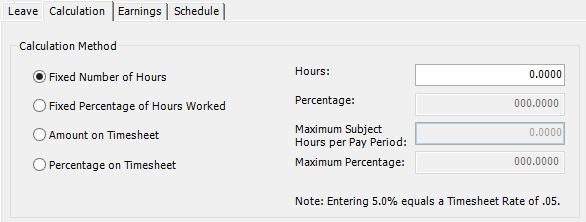 4. Setup the leave code calculation accrual method as “Amount on Timesheet"
