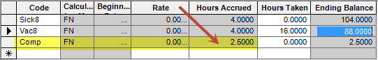 8. After transferring Microix timesheets to Payroll, verify the comp time leave code have the correct number of calculated comp time accrual for the employee