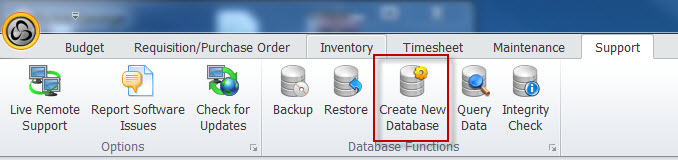 Step 1: Navigate to Support - Create New Database.