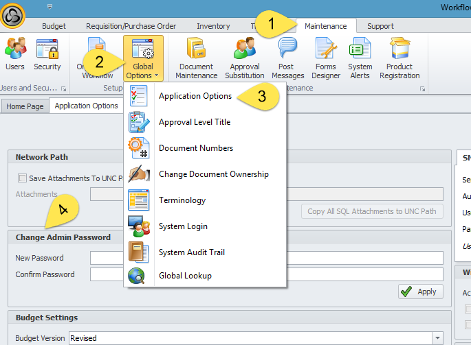 Follow the screen shot below to change the Microix admin password. It must be 6 or more alphanumeric characters.