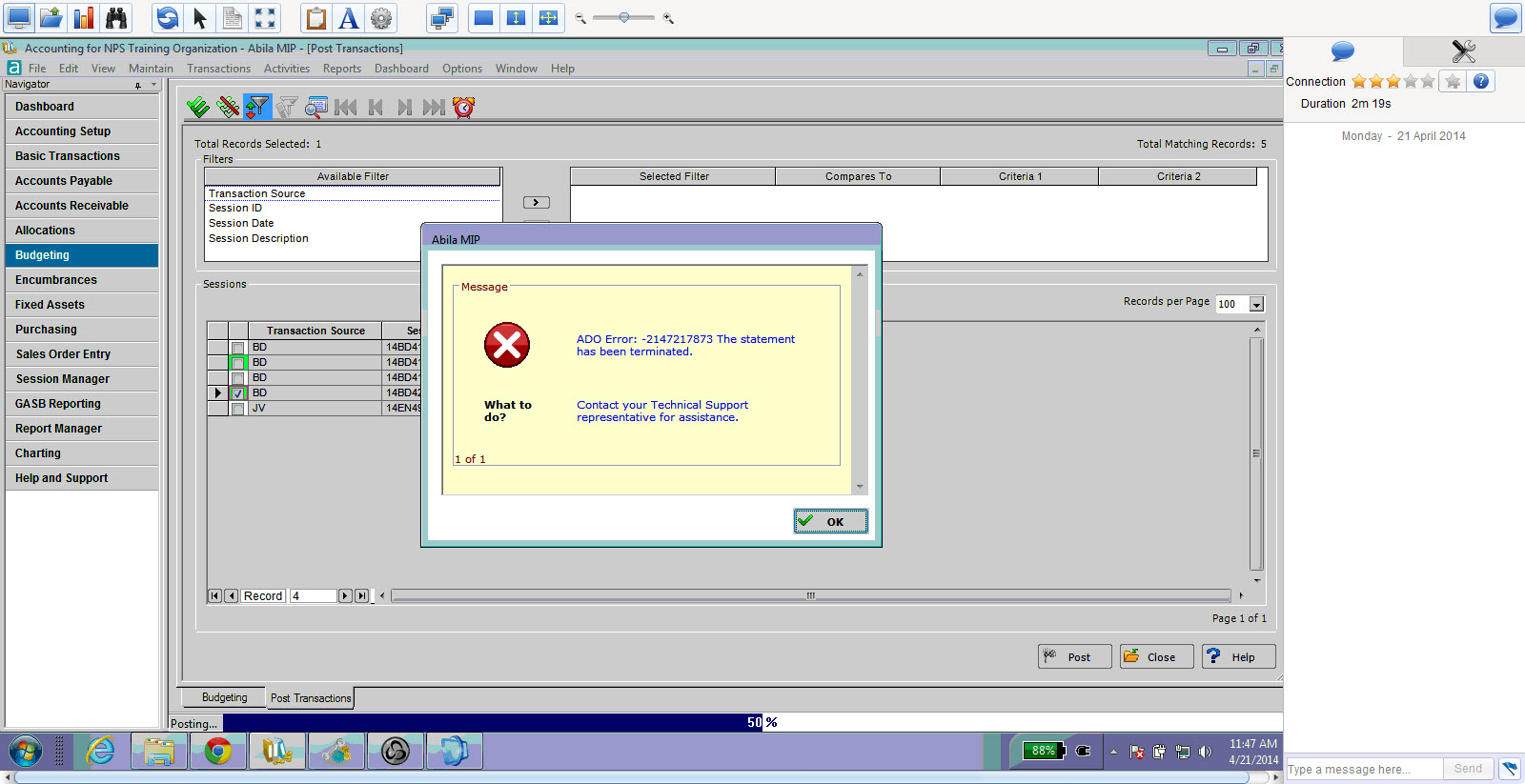 Issue: "ADO Error" while posting Budget Documents in MIP.