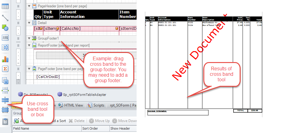 See example on how to use cross band. You can also edit the Sales Order form as this form includes cross band feature.