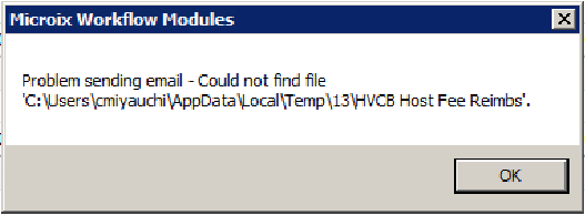 Issue: Problem Sending Email, Could not find file in Temp Folder.