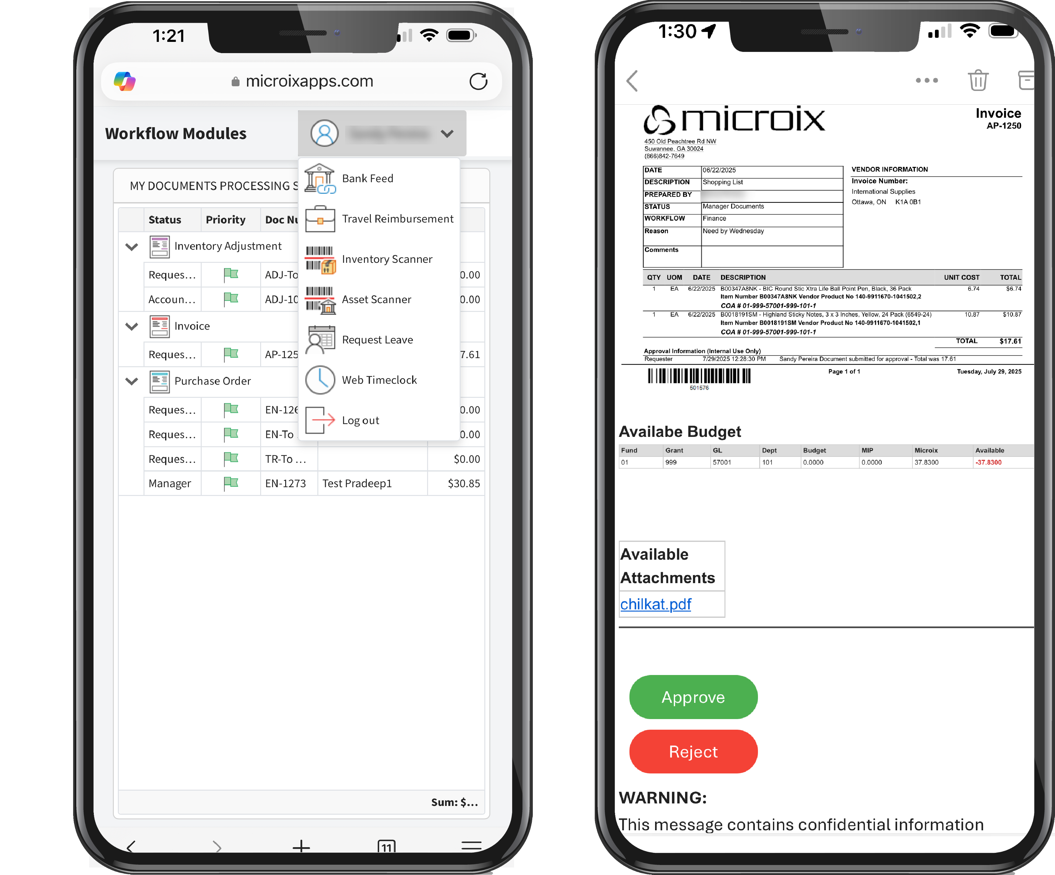 πNOTE: Document Approval are completed using the phone's email client not the Workflow Modules Modern application. Business rules related to viewing of budget and attachments are not enforced when using email app to approve.