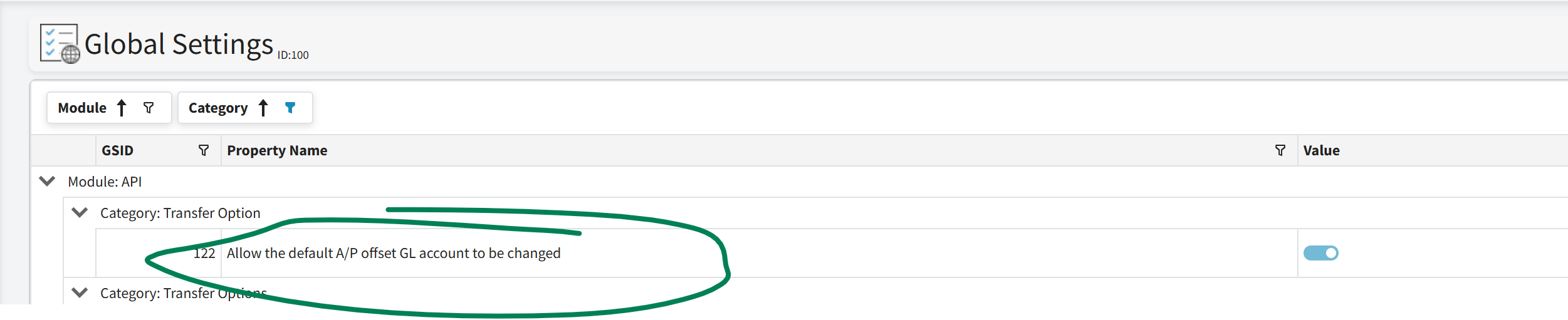 This change allows the accounts payable person to manually choose a different GL offset. If one is not provided the default A/P offset GL# will be applied during the transfer process.