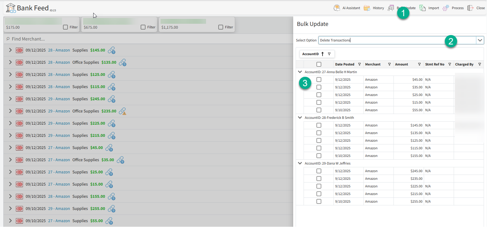 If you’ve imported bank transactions via a CSV file and need to remove them, you can use the Bulk Update feature to delete them quickly.