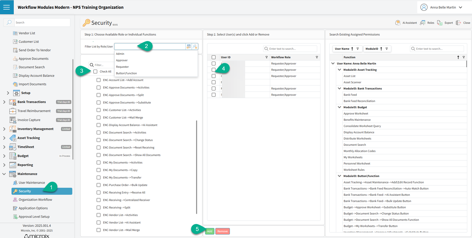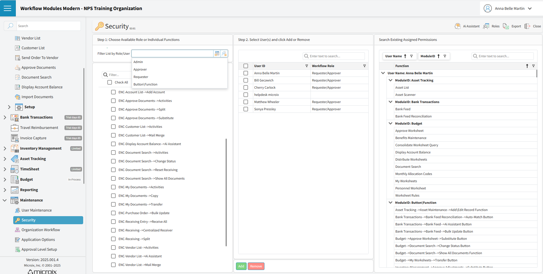 It’s best to assign users to workflows before granting permissions. Doing so helps you clearly identify who will serve as Requesters and Approvers, allowing you to filter users accordingly when applying each role.