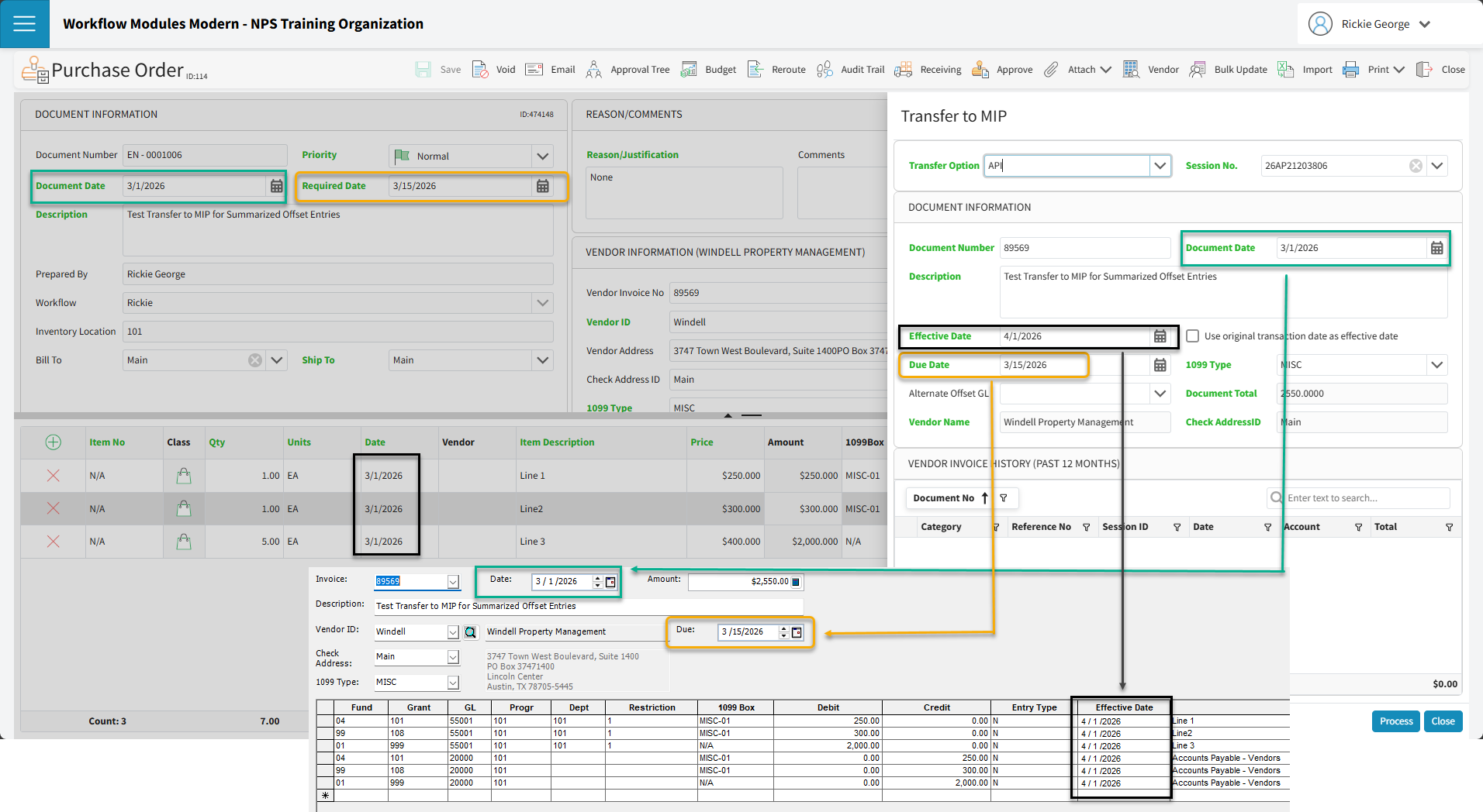 The Document Date in MIP Accounting continues to use the Microix Document Date unless changed during the transfer process