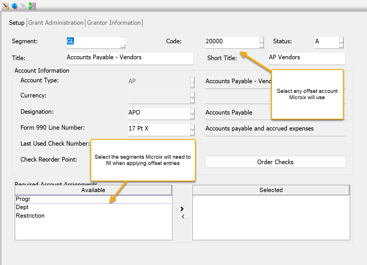 Once these rules are properly configured in MIP, Microix will honor them when creating offset entries.