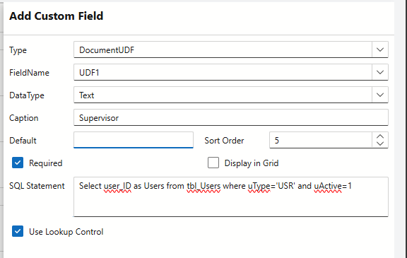 Step 1: Create a User Defined Field (UDF)