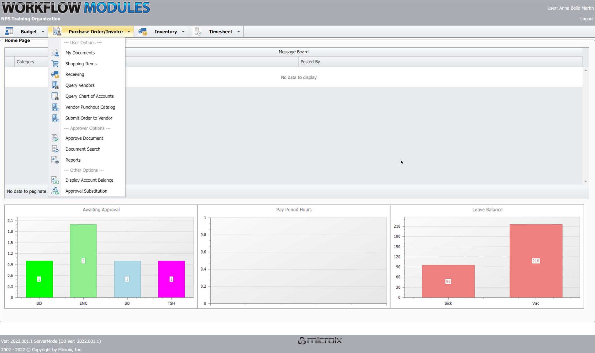 Microix Cloud Companion Web Application - Requisition Module Main Menu Options