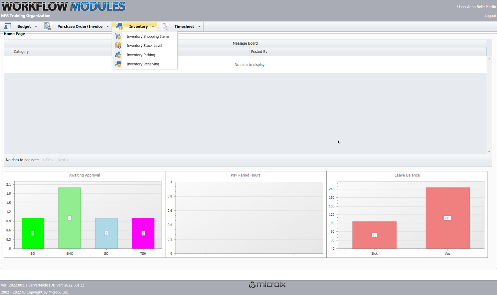 Microix Cloud Companion Web Application -Inventory Module Main Menu Options